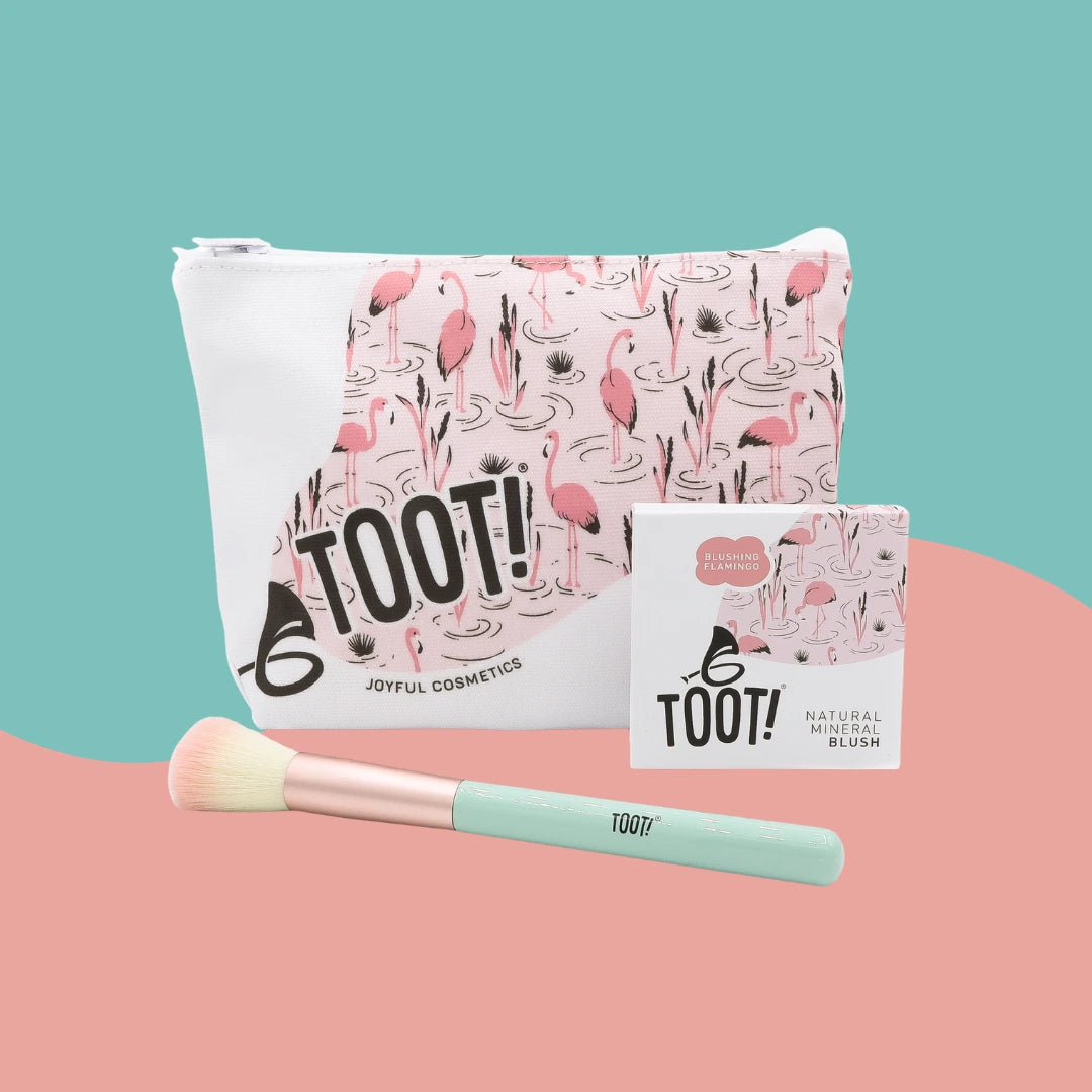 - Set van Natuurlijke Blush, met spiegeltje, in Flamingo en Blush Kwast